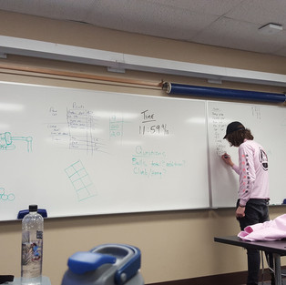 During week 1 we started to brainstorm and decide what we wanted to build for our robot. We chose to do climbing and balls. For the balls, we didn't want to shoot. So we decided to allow gravity to take over. We began to make a wooden box that sat at an angle so the balls could fall into the box and easily roll down and out into the scoring area. We made a door at the end of the box that can be opened or shut to keep the balls from falling out while driving.